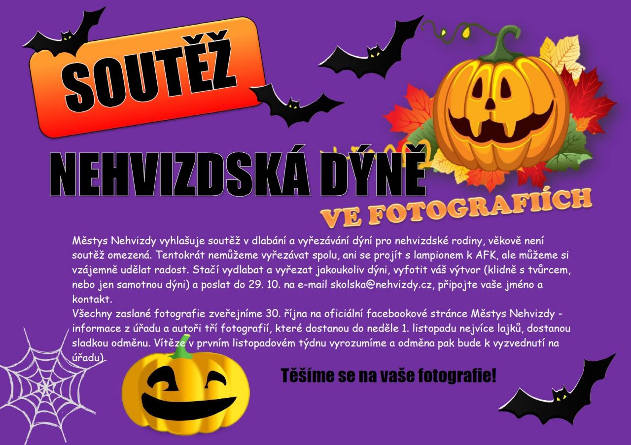 Nehvizdská dýně ve fotografiích má vítěze. Hodnocení halloweenské soutěže (počet lajků odpovídá hodnocení v 18:00 hodin dne 1. 11. 2020. Chtěli bychom poděkovat za všechny krásné dýně a obdivujeme všechny rodiče a prarodiče, kteří je vyřezávali se svými dětmi.