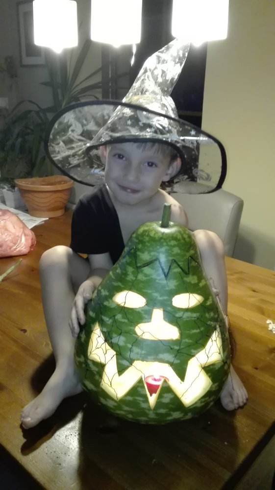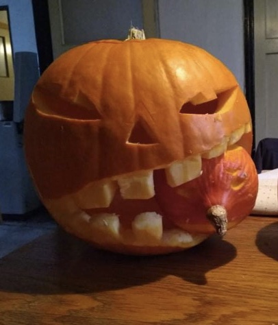 🥈 2. a 3. místo získaly dýně, které vyřezával pan Jan Neuman se svým synem Tobiáškem: 178 hlasů získala jejich usměvavá dýně a 162 hlasů dýně bojovník. Pan Neuman nám však řekl, že jim stačí jedna cena. Vyhrává 20 strašidelných cupcakes. Děkujeme za fair play přístup, velmi si toho vážíme!