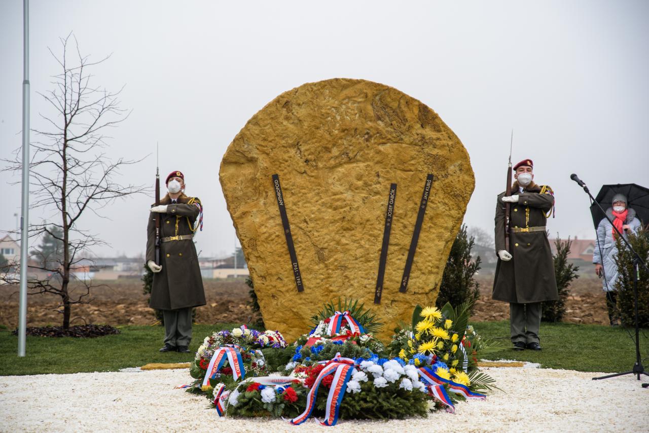 Odhalení památníku se ve středu 29. prosince uskutečnilo za účasti ministryně obrany Jany Černochové, senátora Pavla Kárníka, poslance Jana Hoffmana, velvyslance Slovenské republiky Rastislava Káčera, zástupkyně britského velvyslance Lucy Hughes, britského přidělence obrany v ČR Davida Catmura, ředitele Vojenského historického ústavu Praha Aleše Knížka, předsedy Československé obce legionářské Pavla Budinského, představitelů armády ČR, zástupců mnoha okolních obcí a pražských městských částí, představitelů obce sokolské, církví, veteránských a dalších zájmových organizací.