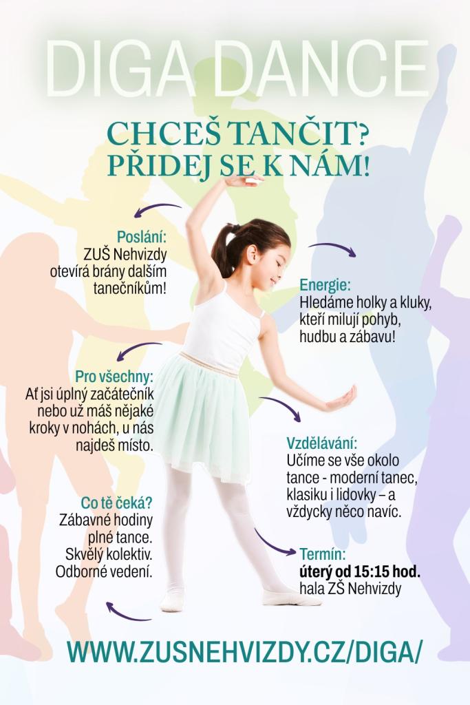 ZUŠ Nehvizdy otevírá své brány pro nové tanečníky. Přijďte se k nám učit tančit, ať už jste úplní začátečníci nebo máte již nějaké zkušenosti. Na našich hodinách se můžete těšit na zábavné lekce plné tance, odborné vedení a skvělý kolektiv. Každé úterý od 15:15 se na vás těšíme v hale ZŠ Nehvizdy.