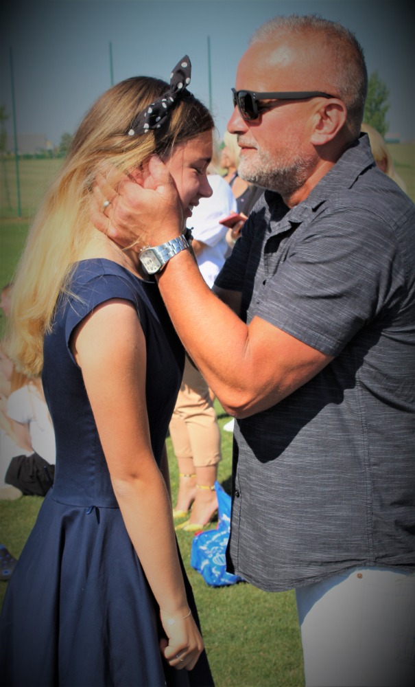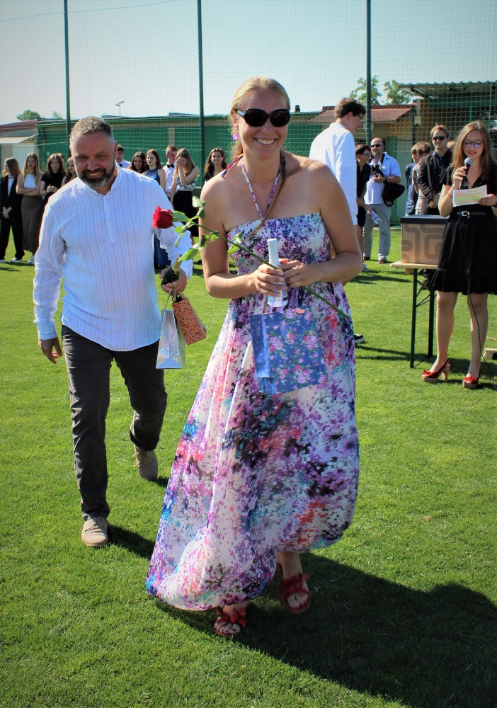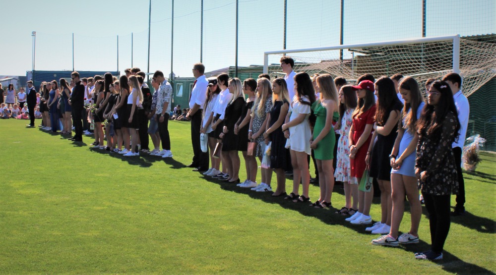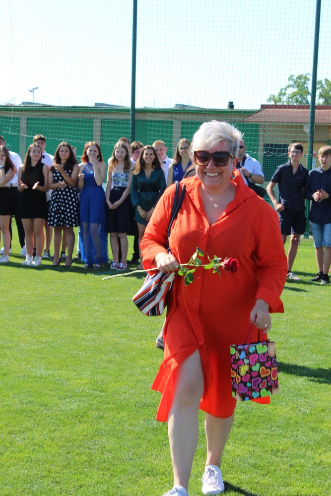 Za vše dík. Budete nám chybět, ale vězte, že s Vámi zůstáváme a Vy zůstáváte v našich srdcích. Teď vezměte svá poslední vysvědčení ze základky, první školy na Vaší pouti za věděním, vezměte a vykročte ze školních dveří. Běžte zpříma, hrdě s hlavou vztyčenou. Ještě chvíli postůjte, pak běžte a dobře žijte.