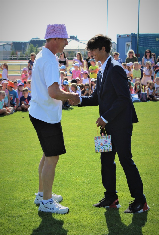 Tak tedy - dámy a pánové z našich devítek, za všechno dík. Za Vaše první školní kroky, za ztracené věci, za úsměvy i slzy. Za nová přátelství, za jedničky i pětky, za pochvaly i poznámky. Za slušnost i drzost, za první lásky, za výlety i učení, za písemky a úkoly, za legraci i vážnost. Za Vaši důvěru k nám a za možnost, že jsme s Vámi mohli být a mít Vás rádi.