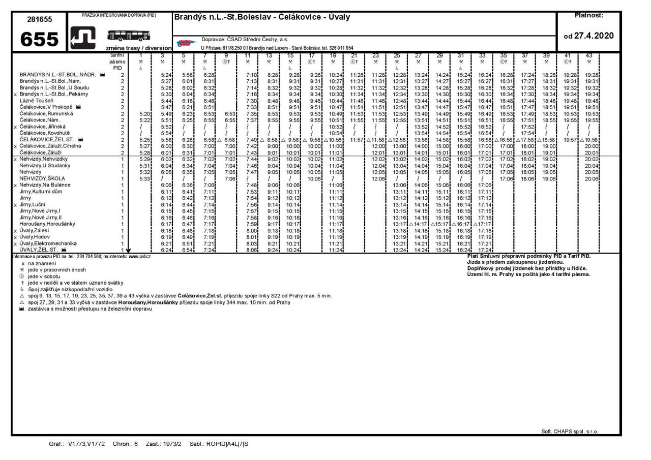 Linku 655 proto čeká výluka. Autobusy budou mezi zastávkami Brandýs nad Labem, U Soudu a Lázně Toušeň odkloněny přes zastávku Brandýs nad Labem, Pekárny, Zastávka Lázně Toušeň. Zastávka bude zcela bez obsluhy. Zastávka Lázně Toušeň ve směru do Brandýsa bude přemístěna do ulice Nehvizdská za vjezd do domu č.p. 2.